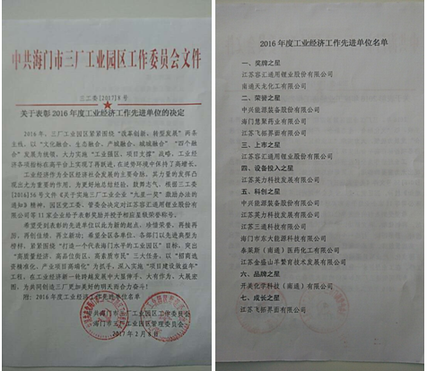 工业经济作为全区经济社会发展的主要命脉,其力量的发挥凸现出尤为重要的作用。为更好地总结经验,鼓舞志气,根据三工委[2016]56号文件《关于实施工业企业“九星一奖”激励办法的通知》精神,园区党工委、管委会决定对海门慧聚药业有限公司等11家企业给予表彰奖励并授予相应星级荣誉称号。海门慧聚药业有限公司被授予2016年度工业经济工作先进单位之荣誉之星。